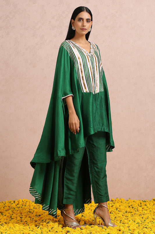 Coral Printed organza saree with Teal Blouse(set of 2)