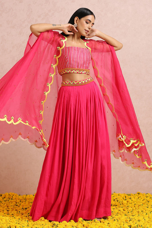 Fuschia lehenga with dupatta (Set of 3)