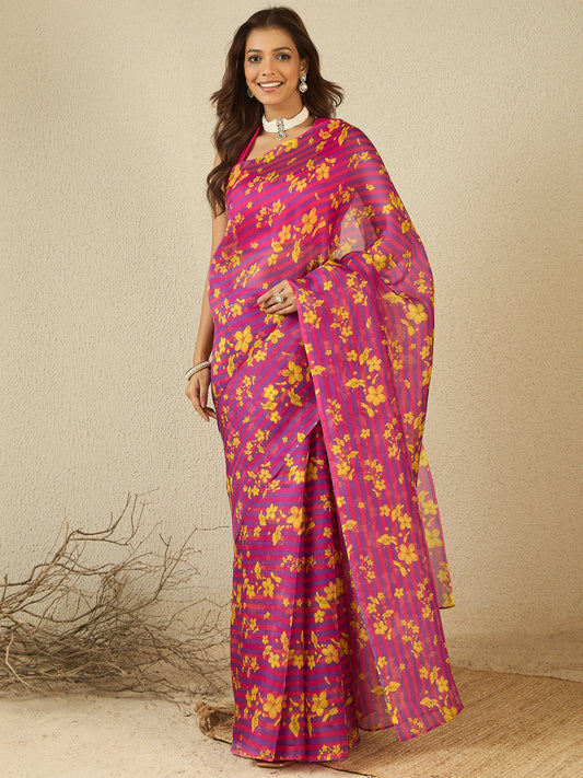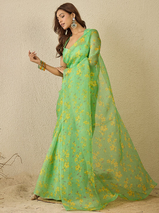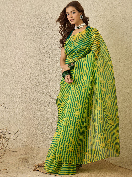Emerald lime stripes with unstitched blouse ( set of 2)
