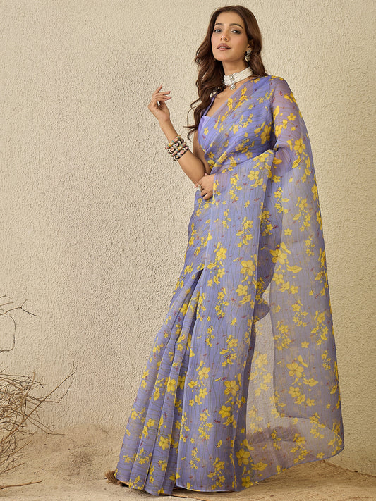 Purple pink stripes saree with unstitched blouse ( set of 2)