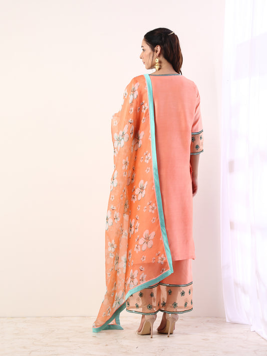 Coral Kurta set with organza dupatta(set of 3)
