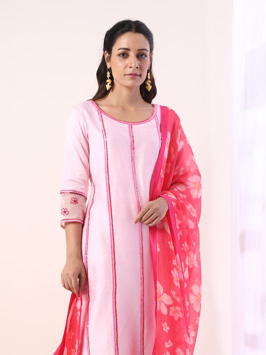 Fuschia Kurta set with organza dupatta(set of 3)