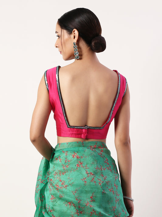 Green Printed organza saree(set of 2)