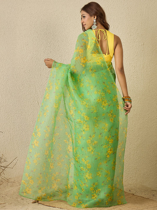 Emerald lime stripes with unstitched blouse ( set of 2)